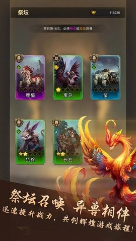我的异兽手机版是一款以山海传说异兽为主题的角色扮演游戏,在这里,你可以见到许多活灵活现的珍贵异兽,于传说故事一样出现。玩家将化身为守护者,用动听的音乐和它们建立起羁绊和联系,从此开始愉快的养成和战斗冒险,做到真正的逍遥与自由。