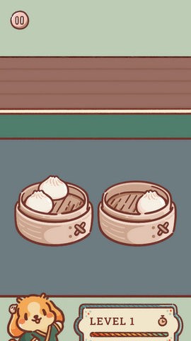 2、进入关卡一,你需要将相同的点心配对,游戏操作很简单,拖动右边的包子放入左边即可。