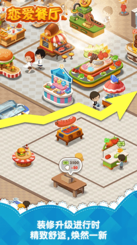 2、为顾客提供更舒适的餐桌、更贴心的服务、更有经验的厨师、更多的惊喜区域,增进顾客关系,解锁更多爱情插画!