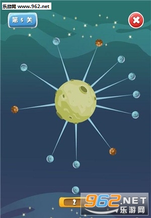 游戏操作简单,点击屏幕,让屏幕下方的小球成功连接到一直旋转的星球上,当所有的小球全部与星球成功连接,则游戏通关;若小球与其他小球撞击则游戏失败。