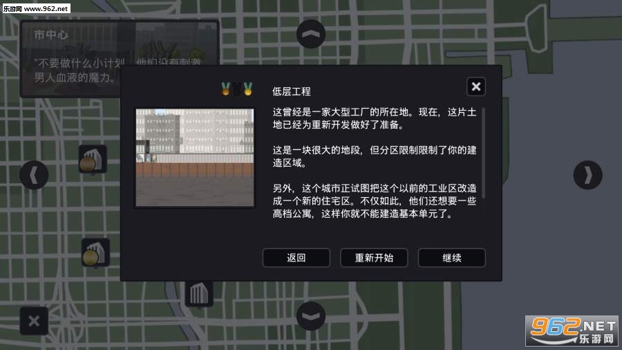 2、开放沙盘游戏与几个困难的水平和开始条件,让您建立您的梦想摩天大楼高耸于周围的城市;