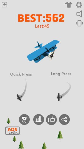皇家飞行员的考验很简单,就是通过考试你就可以毕业,但是所谓的考试或者说考研可不是你下那个象中的那么简单,但是如果你掌握游戏的技巧,俺么就不是问题了!简单的控制:第一个按键是左边的,第二个是右边的。现在让我们开始一个新的挑战与这个美丽的极简拱廊游戏,天空滑翔机。