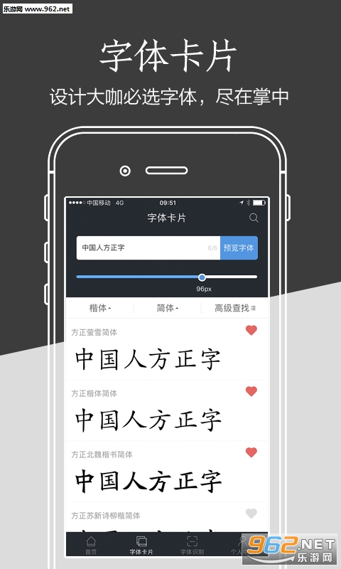 1、字体卡片:中文字体手册、预览文字样式、欣赏汉字之美