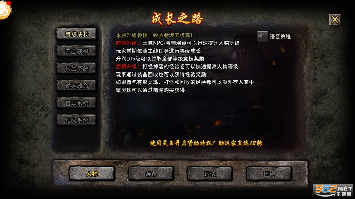 独创完善的转生体系,只需玩家满足指定等级便可前往挑战守门怪,人物觉醒实战全面升级。