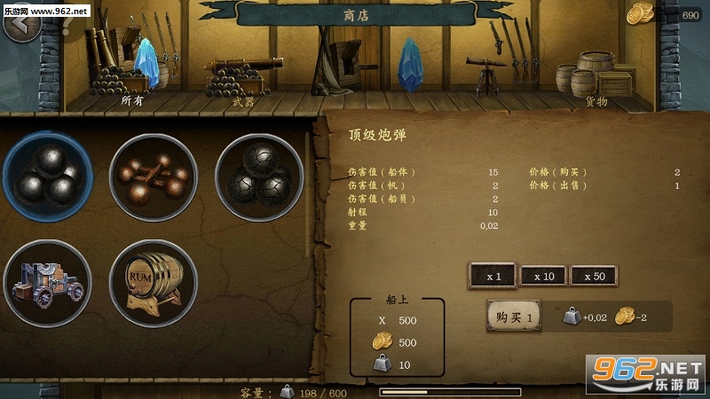 3、金币来源:游戏中炮弹、船只、水手招募、卷轴都需要金币来购买,而且你为船员付薪水也要用金币,所以游戏中金币尤为重要。金币的来源主要有两种:战胜并劫掠敌人、完成任务。