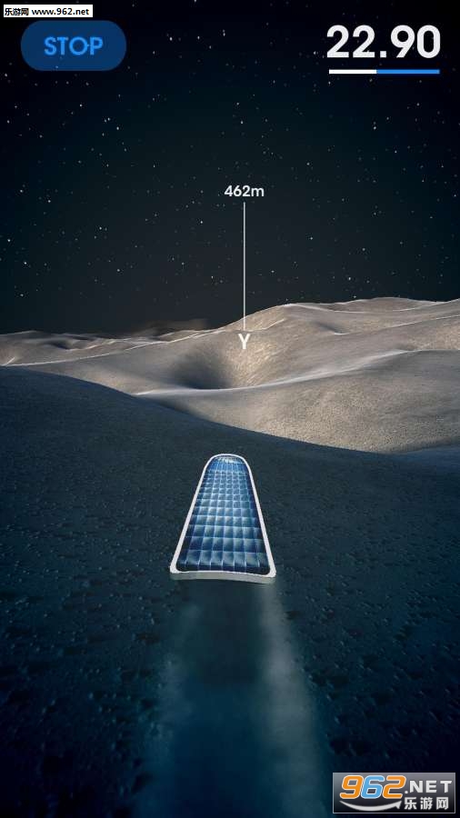 你拿着一块太阳能板,在满月的尘土飞扬的山丘和陡峭的陨石坑中间滑行冲浪。你可以自由的滑行,也可以设置目标终点来练习。