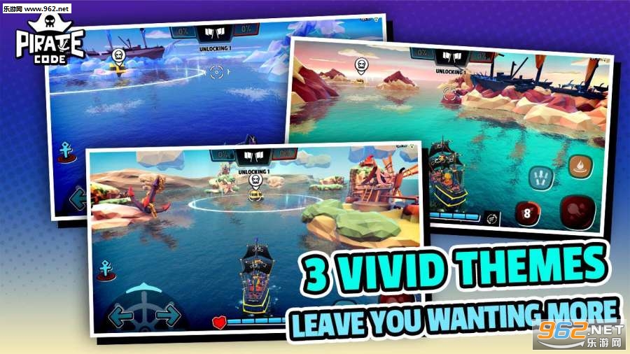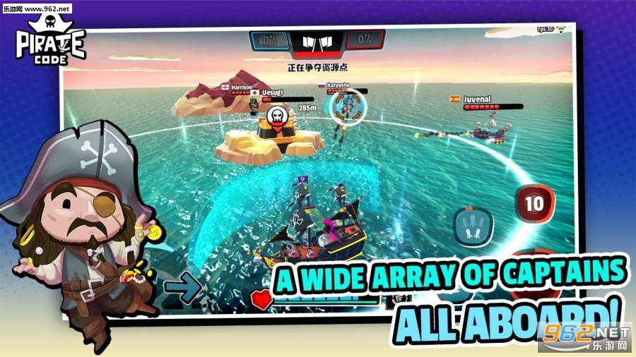漫画风格的海战游戏,采用低多边形3D建模,配合劲爆的视觉体验。5V5在线对战模式,操作非常简单容易上手,玩家可选择造型各异的船只搭配个性鲜明的海盗船长,与队友携手战斗。