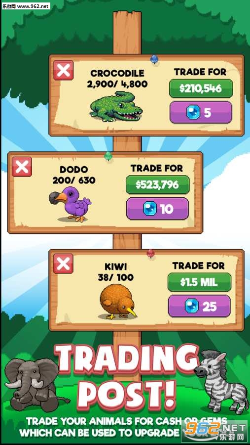 在动物园的贸易岗位上交易你的动物园动物,这些宝石可以用来促进你的进步。