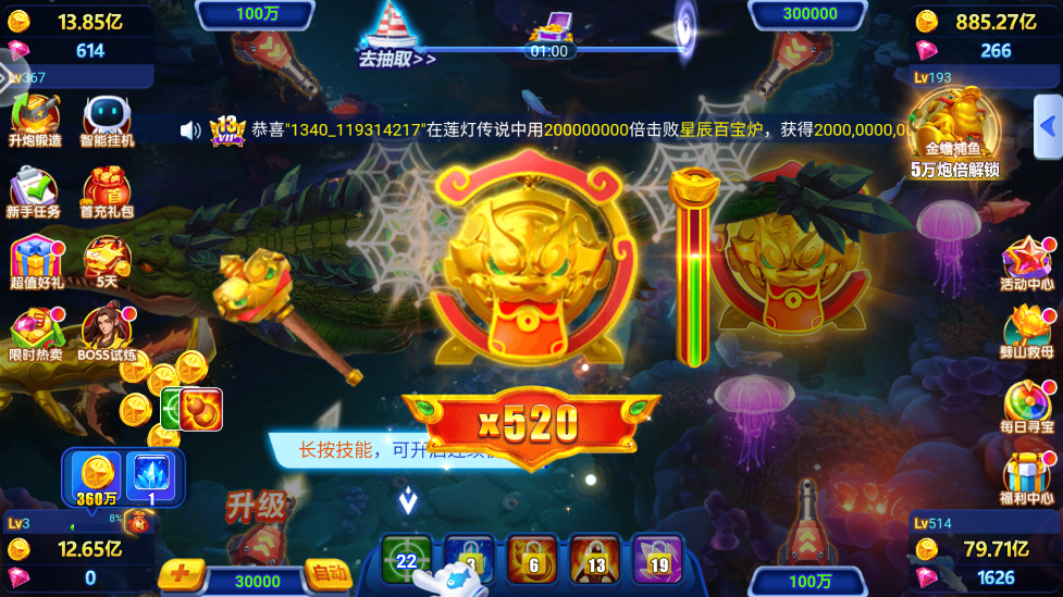 竞技场boss场万人齐聚,巅峰对决谁是捕鱼王者?