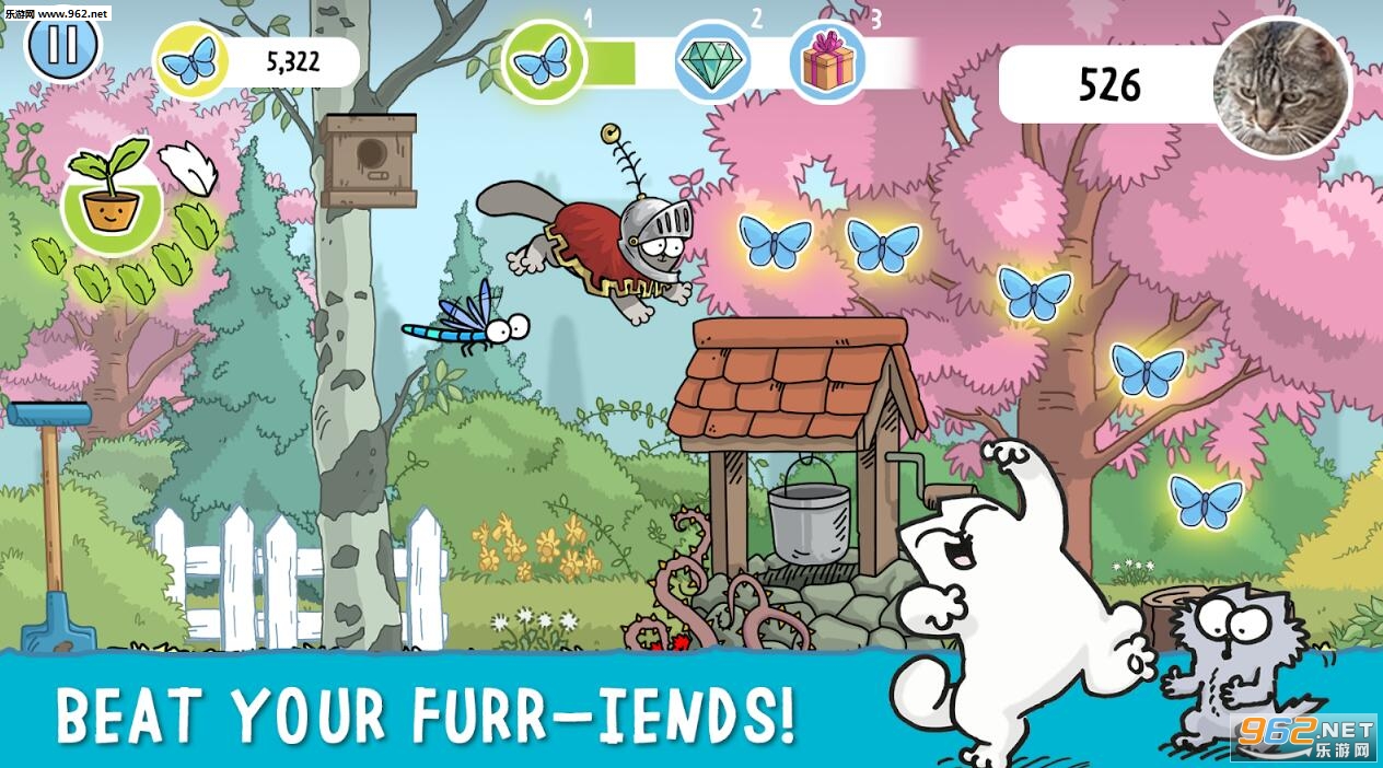 一款休闲益智手游,西蒙的猫梦想与他的爱情克洛伊约会,但他需要蝴蝶打动她。 SimonCat&Friends追逐蝴蝶,开始探索这个无尽的亚军游戏!