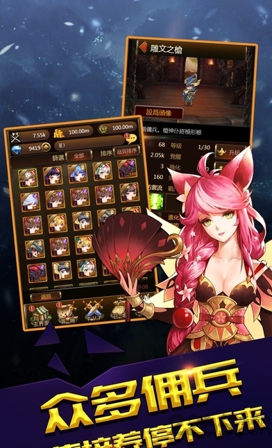 多达186个英雄供您排兵布阵,更有探险、远征、攻城战、掠夺战、虚空副本、世界BOSS等特色玩法等你来冒险,丰富玩法百变组合,海量福利等你来拿!