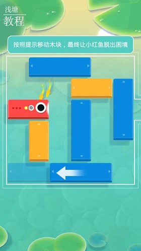 按照木块长度方向,移动小木块,最终让小红鱼逃出困境。