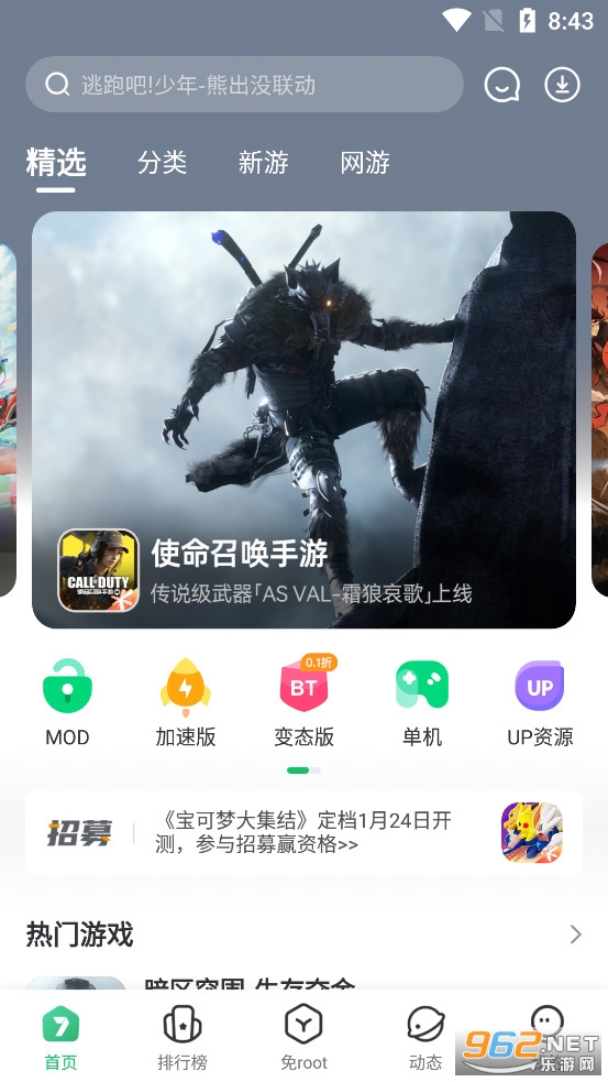 全新界面:全新设计,产品分类更清晰,游戏下载更顺畅