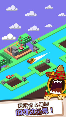 1、抓住树枝,游过无边的美丽河流,但要小心鸟类和青蛙,不要让它们分散你的注意力;