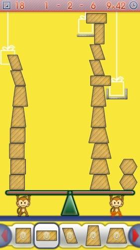 玩家要通过将不同形状的积木叠加起来,并且能够保持立着直到够到水果。
