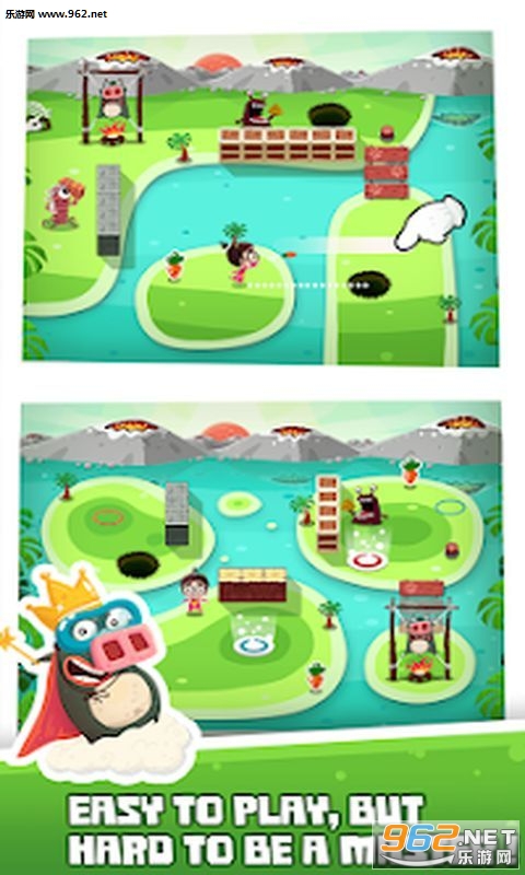 1、卡通角色的设定一直冒险的剧情,解救小猪的过程就是自己一步步向前通关的冒险,为啥天天烤猪还没有烤熟,还等着分一杯羹呢。