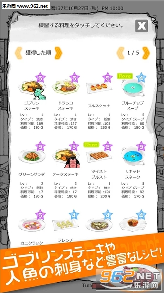 售卖这些料理,获得经验值,黄金和名声