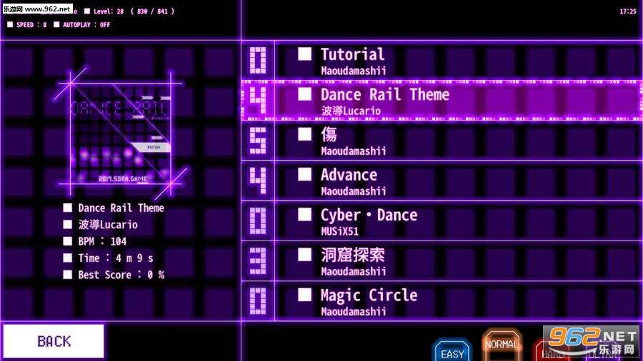 《DanceRail安卓版》是一款画面简约的音乐点击类趣味手游,游戏中玩家可以选择不同的难度和不同的歌曲进行体验,点击移动的音标来演奏出美妙的音乐,在后面游戏会加入更多的歌曲,让玩家有着新的体验。