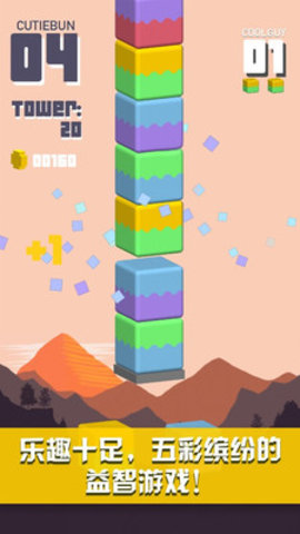 游戏玩法简单易上手,却能让您爱不释手:只需在你的回合内挑选一个方块,堆叠到方块塔中。每个方块分为两种颜色,如果您使相邻的方块颜色相同,将会赢得分数。