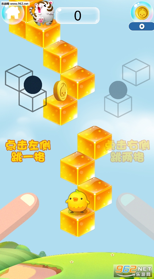 点击左边是向上爬,点击右边来跳过空缺或躲开其他的萌宠,你在上爬的过程中可以收集硬币来解锁新的萌宠,你的小鸡能达到目标吗?你的小鸡可以走多远呢?