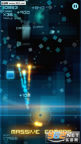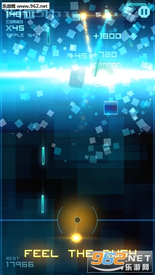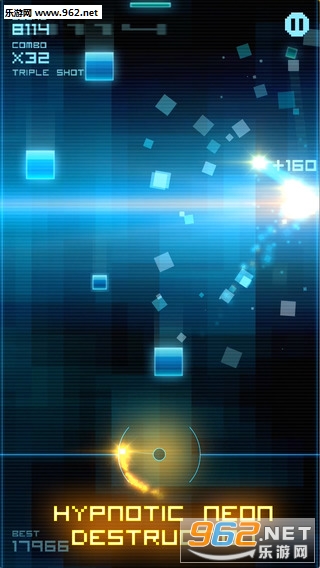 《炫光革命》是一款科技化风格的休闲类游戏,在游戏中玩家需要尽可能多的获得分数。游戏的操作是根据物理学上的离心运动,按住小火球做圆周运动,松开小火球就沿切线方向发射,击中方块得分,圆周运动时还有个蓄力阶段,蓄力越久火球射得越远。