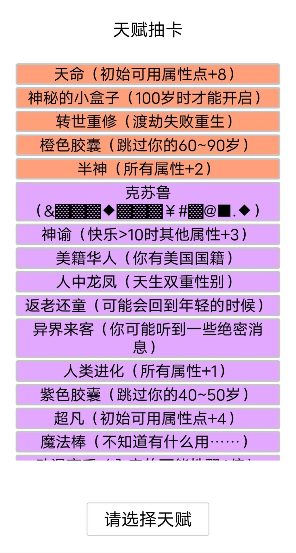 克苏鲁是游戏中的紫色天赋,该天赋会将玩家进行的事件变为乱码,会影响玩家的属性。