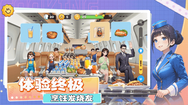 1、扮演一位在飞机上制作美食的厨师,高效率的制作旅行餐品;