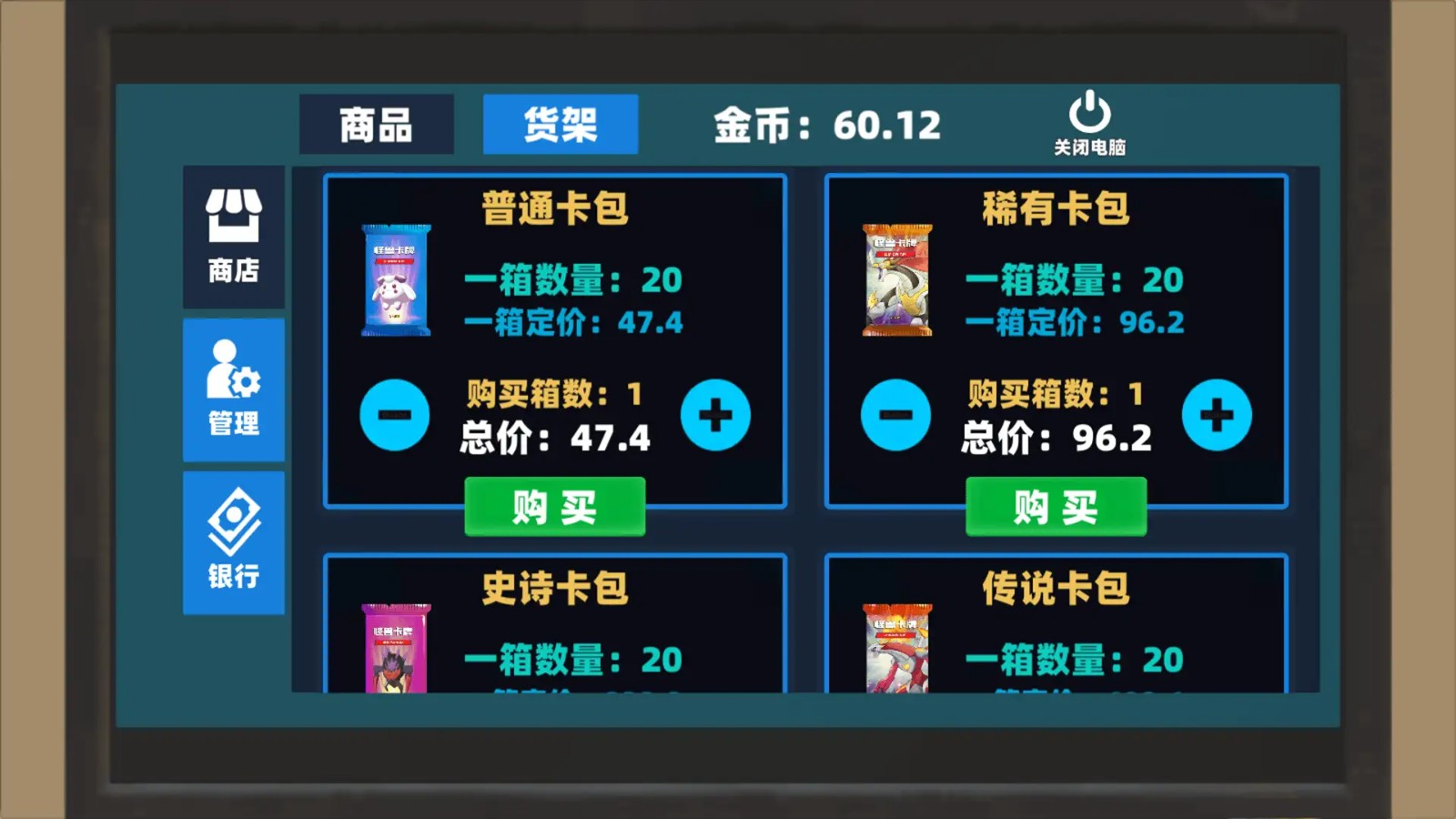 1、玩家将加入到一个虚拟的商业世界,经营自己的卡牌商店;