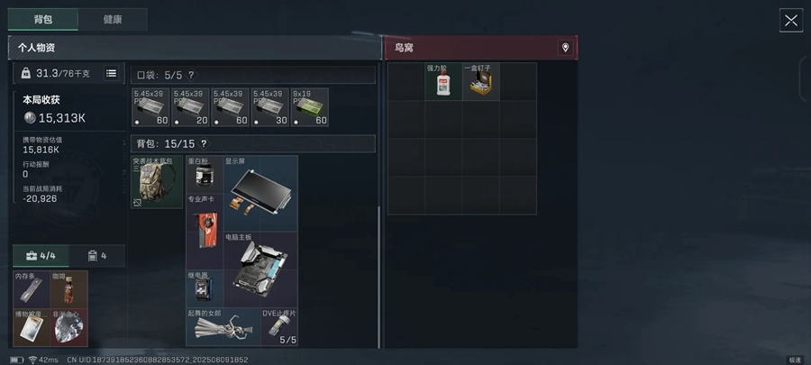 方法二:红狼速撤流!面对没有制式套和方法一失败的鼠鼠,我非常推荐该流派。流派思路:短时间内搜光撤离路上的所有物资点然后抓紧撤离。流派优势:利用红狼的高机动性和高容错率以最短的时间完成对局,主打吃得到就吃,吃不到我就到下一把吃,通过高频对局刷新出货率。推荐该流派的理由也很简单,系统会通过高撤离率认定该流派的人为正常游玩的玩家,将其丢进正常对局,享受正常水平的爆率以及相对正常的对手。这样我们逃离黑屋的想法就顺利完成了。