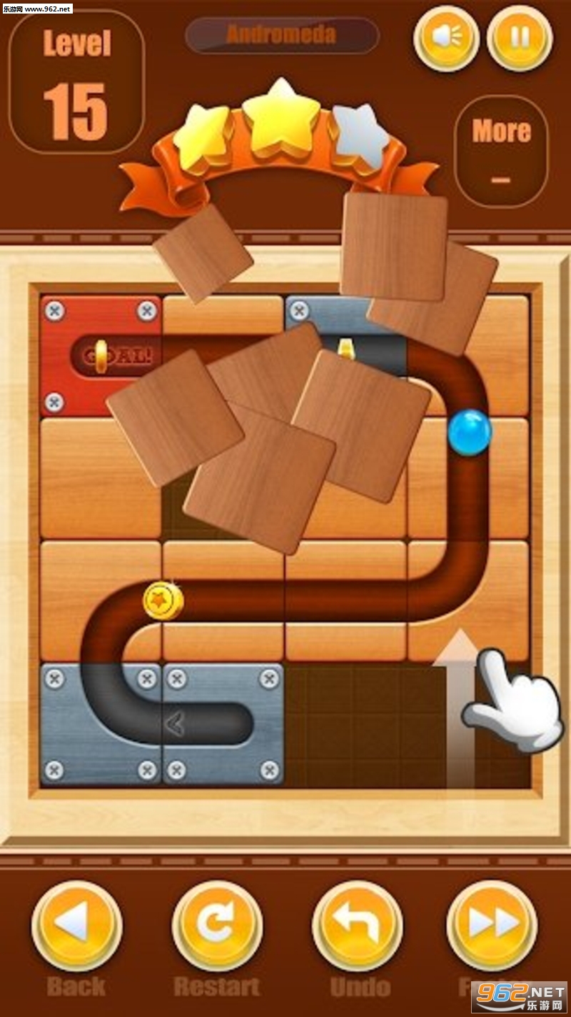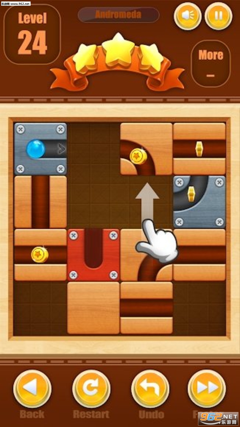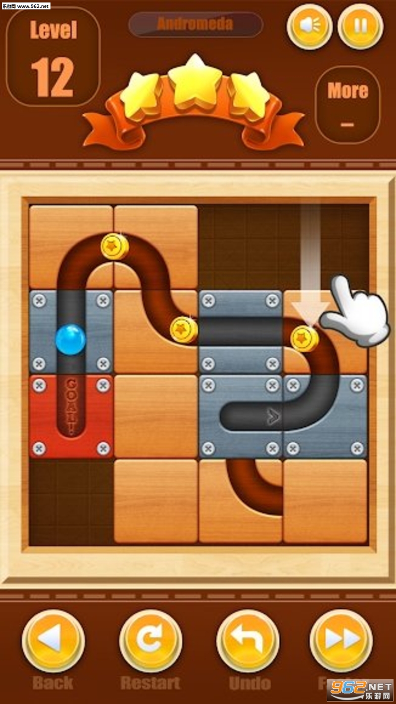 经典模式:移动越少的次数让球到达终点就可以获得更多的星星;