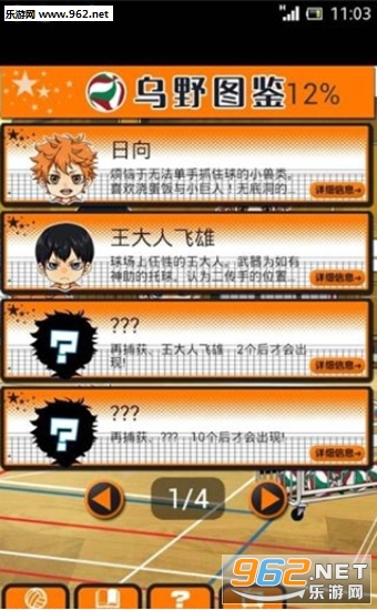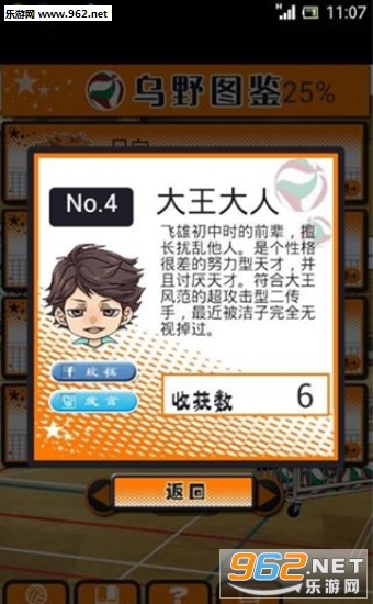 这个游戏也是小编抱着试一试的态度去网上搜寻的,没想到真的还有这样一款游戏,《排球少年》这部动漫是小编这两年来看的最好看的动漫番了,没有之一,现在小编很自豪的说已经第7刷了!那这款游戏只是一款小游戏,因为不涉及到动作的游戏方法,所以玩家就无法体会到小排球中球场上那种热情洋溢的情感了,虽然很遗憾,但是出于对这个作品的爱,这部游戏在小编看来也是很不错的,它满足了动漫迷们对于小排球人物的收集欲望,在游戏中模拟了动漫原作的剧情,是一款剧情向游戏,玩家在完成片段的剧情之后就会获得一个人物的图鉴,我们要做的也就是将所有的人物图鉴收集即可,怎么样是不是非常简单又非常满足小排球迷们的收集欲望呢,想要体验的童鞋赶快下载吧,把小天使们都收入囊中!