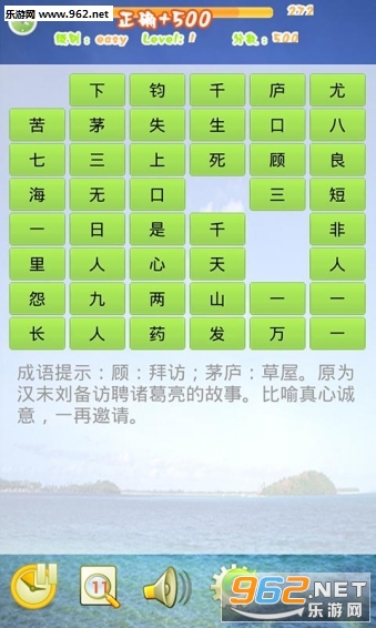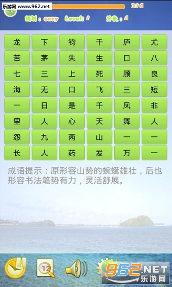 3.每个等级有320秒时间完成12个成语的正确连接,每个成语按字顺序选择,如果选择错误,需取消选择的字,重新选择。