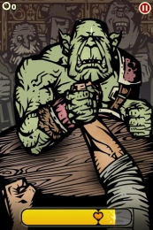 《ARM的克星游戏》是一款很有趣的掰手腕游戏,游戏狂野的画风是一大亮点,看着就充满力量感,游戏中玩家作为一个在酒馆休息的英雄,你总是要面对很多上来挑战的人,一个个的击败他们,让它们见识英雄的能力,使用各种方法打败你的对手,快来试试吧。