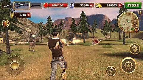 枪火西部无限金币版中文版是一款一款极具西部风格的有关西部牛仔题材的生存冒险RPG游戏,逼真感十足,在这里有着各种各样的敌人和危险,你可以在各处闲逛,猎杀动物,消灭殭尸,除了紧张刺激的枪杀战斗之外还有决斗、赛马、飞镖、21点等等小游戏可供消遣。