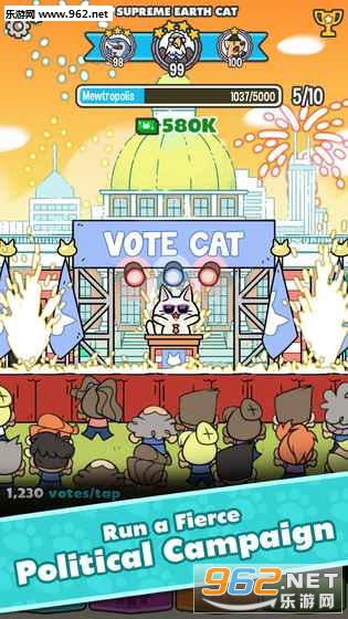 《喵喵选举》是一款超萌的放置手游。游戏中的这只喵不平凡,它不甘心这一辈子只做一个人的喵主子,它想成为宇宙万物的喵主子,哼,真实心比天高……志向远大呀,没有办法,它是喵主子,一切都得支持它,所以游戏中玩家的主要任务就是帮助喵喵选举,走上喵生巅峰。