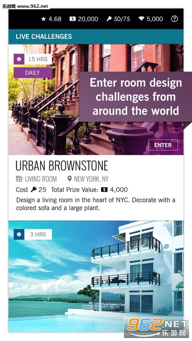 《房屋设计》(Design Home)是Crowdstar公司推出的一款模拟建筑游戏,游戏玩法很简单,玩家要做的就是从中选择符合个人喜好的房间进行打造,不管是大都市高层公寓还是异国海滨别墅,又或者是山间风情风格都可以实现。