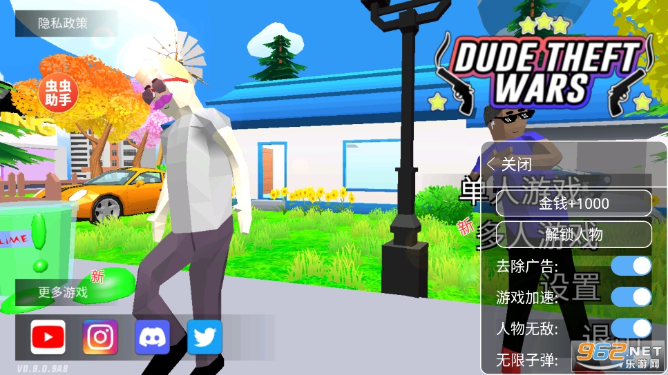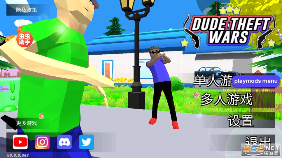 《沙雕模拟器开放世界沙盒》(Dude Theft Wars Shooting Games)是一款像素风格的自由度高的冒险模拟手游,游戏中玩家可以选择单人模式和多人模式去冒险,可以控制角色在城市街道等各个场景冒险,可以使用手雷、棍棒等进行攻击,可以驾驶摩托车、汽车等。
