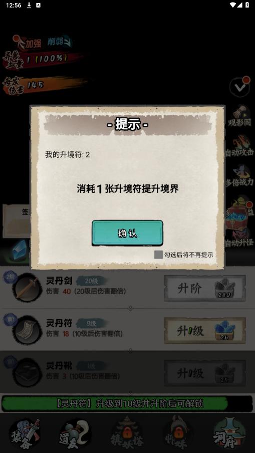 去镇妖塔,激活狂暴,挑战妖怪,提升境界