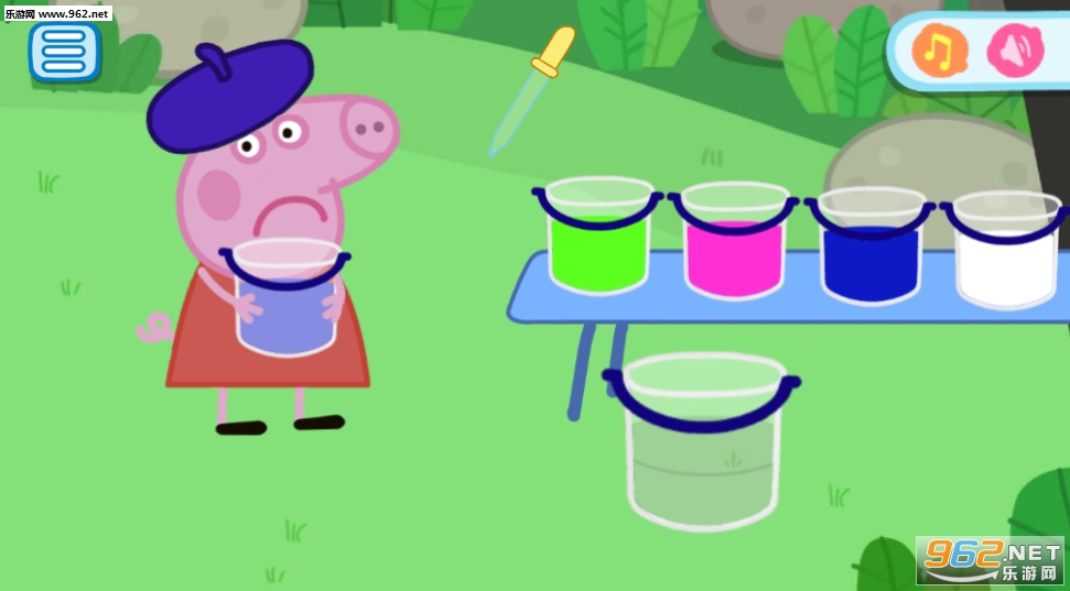 3 - 混合色Peppa有油漆的桶,帮助Peppi创建完全相同的颜色。你必须混合的颜色。添加额外的油漆空桶,混合的颜色,看看颜色,你得到的。有趣的教育迷你游戏的孩子中,孩子学会通过混合不同的颜色来创造所需的颜色。