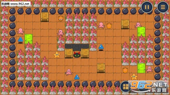 《魔王的箱子安卓版》这是一款益智类的动作闯关手游。游戏采用推箱子的规则,操作简单易懂。玩家可以控制角色移动,躲避和消灭所有的敌人,将3个黄色箱子推到相应的位置即可通关,还可以挑战随机模式和自定义模式。