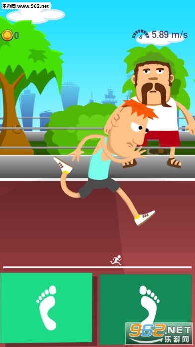 主角是一名跳远运动员,玩家需要通过点击按钮的方式,为他提供助跑加速,获得更好的成绩。