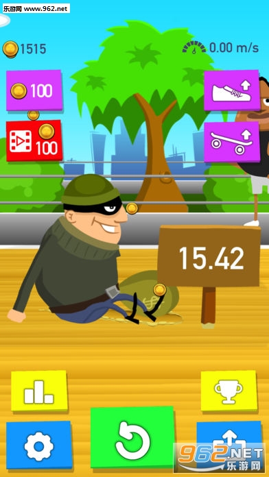 这是一款休闲的跳远游戏。游戏中可以点击按钮加速,点击频率越高,速度便会越快,跳远选手便可以跳出更远的距离!