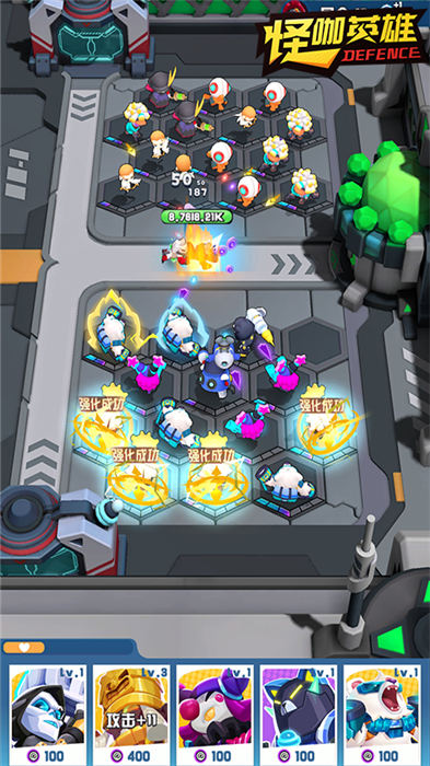 1、各种有趣的英雄会团结起来战斗,用自己的技能疯狂地攻击对手