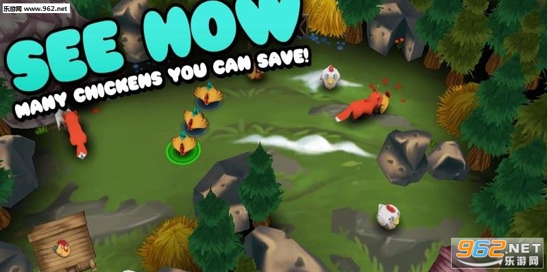 在这款游戏中,你的目的是要在狐狸把小鸡变成美餐前,将小鸡赶到自己的鸡舍。玩家可以将自己的小鸡排起队来带回鸡舍,每保护一只小鸡得到的分数将根据队伍的长短成倍增加。当然玩家也可以将狐狸扔到笼子里。此外,玩家还可以不断刷新游戏中心上的成绩记录和英雄榜。