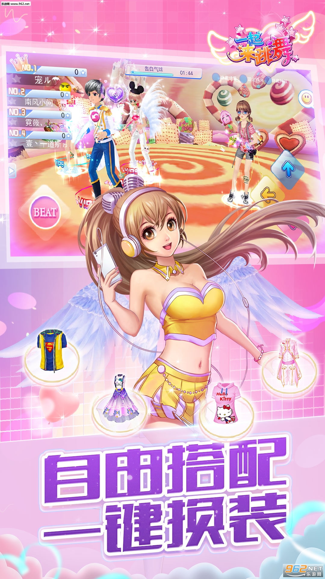 最炫的全民音舞社交手游,一亿人都在玩的休闲游戏!《一起来跳舞》全新版本休闲社区重磅登场!自由活动的梦幻世界,甜蜜的双人互动,浪漫的旋木摩天轮,让你跨越时空遇见真爱!