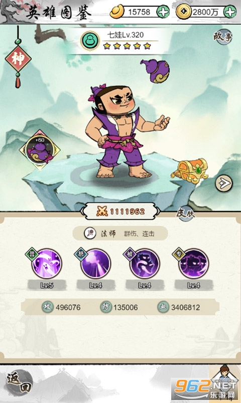 游戏中还原了葫芦娃七兄弟的形象,每个角色都有独特的技能和成长路线。玩家可以通过简单的放置操作,让葫芦娃自动战斗,获取经验值和道具,从而提升他们的等级和能力。随着等级的提升,葫芦娃们将解锁各种神通技能,如三娃的铁头功、四娃的喷火术等,增强战斗能力。