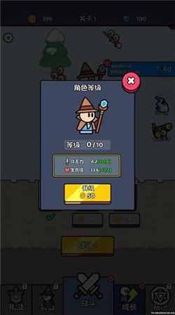 4、花费金币可以升级角色的所有基础属性,大幅的增强角色的能力,玩家们也可以花费金币升级关卡里的士兵攻击力或者是最大存储的肉类,还有很多小游戏等待着玩家们。