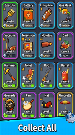 3、加入超多丰富的武器类型,每种都能够进行合并,解锁超级武器。