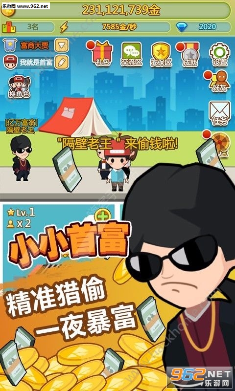 《小小首富手游安卓版》是一款十分好玩有趣的休闲益智模拟经营类游戏,在游戏中玩家将从一个穷屌丝做起,通过不断的努力工作,最终发家致富成为世界首富的故事,你将在游戏中体验小偷、保安、管家、厨师等各种各样的职业,喜欢这款游戏的小伙伴儿赶快来下载开启你的致富之路吧!