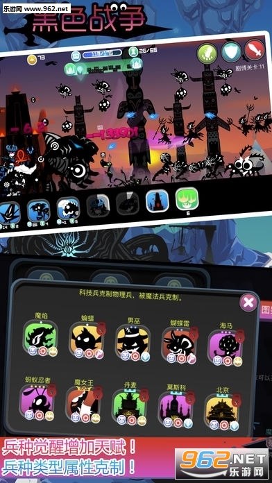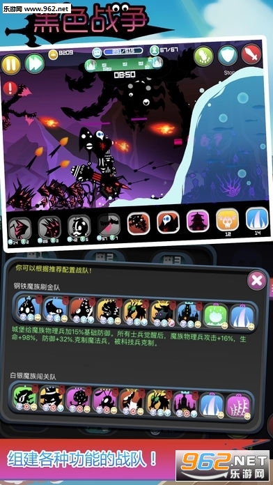 《黑色战争手游》是一款略带惊悚氛围的暗黑向恐怖闯关类游戏,在游戏中玩家需要通过点击来打败各种各样的敌人,并且收集各种新奇古怪的兵种为你作战,你需要剿灭恶魔的巢穴,恢复帝国往日的繁荣。喜欢这款游戏的小伙伴儿赶快来下载试试吧!